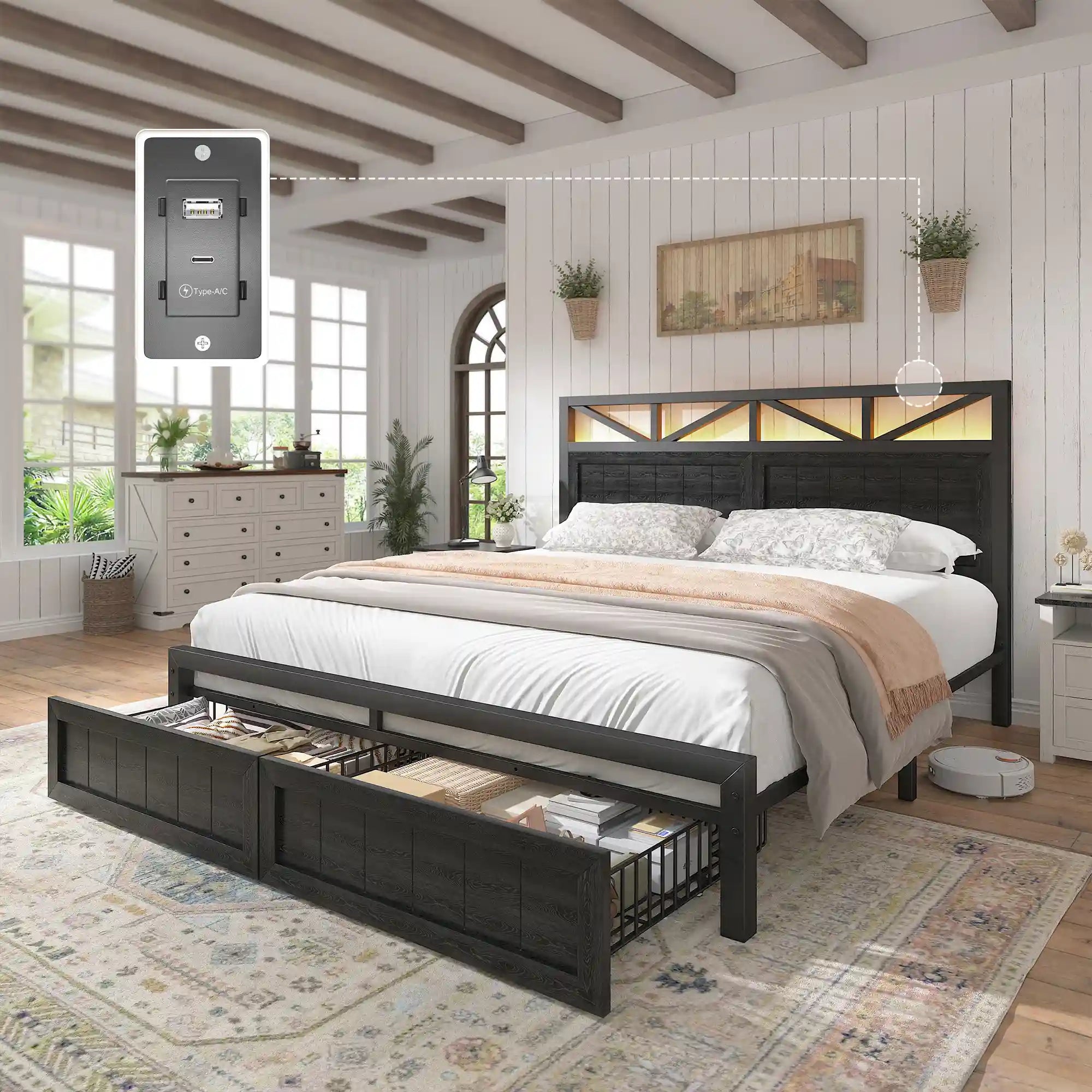 Stay connected and set the mood—all from your bed. The smart headboard includes built-in LED lighting with multiple color options and brightness settings, easily controlled with a remote. It also features both USB and Type-C ports, so you can charge your phone, tablet, or smart device without getting out of bed.