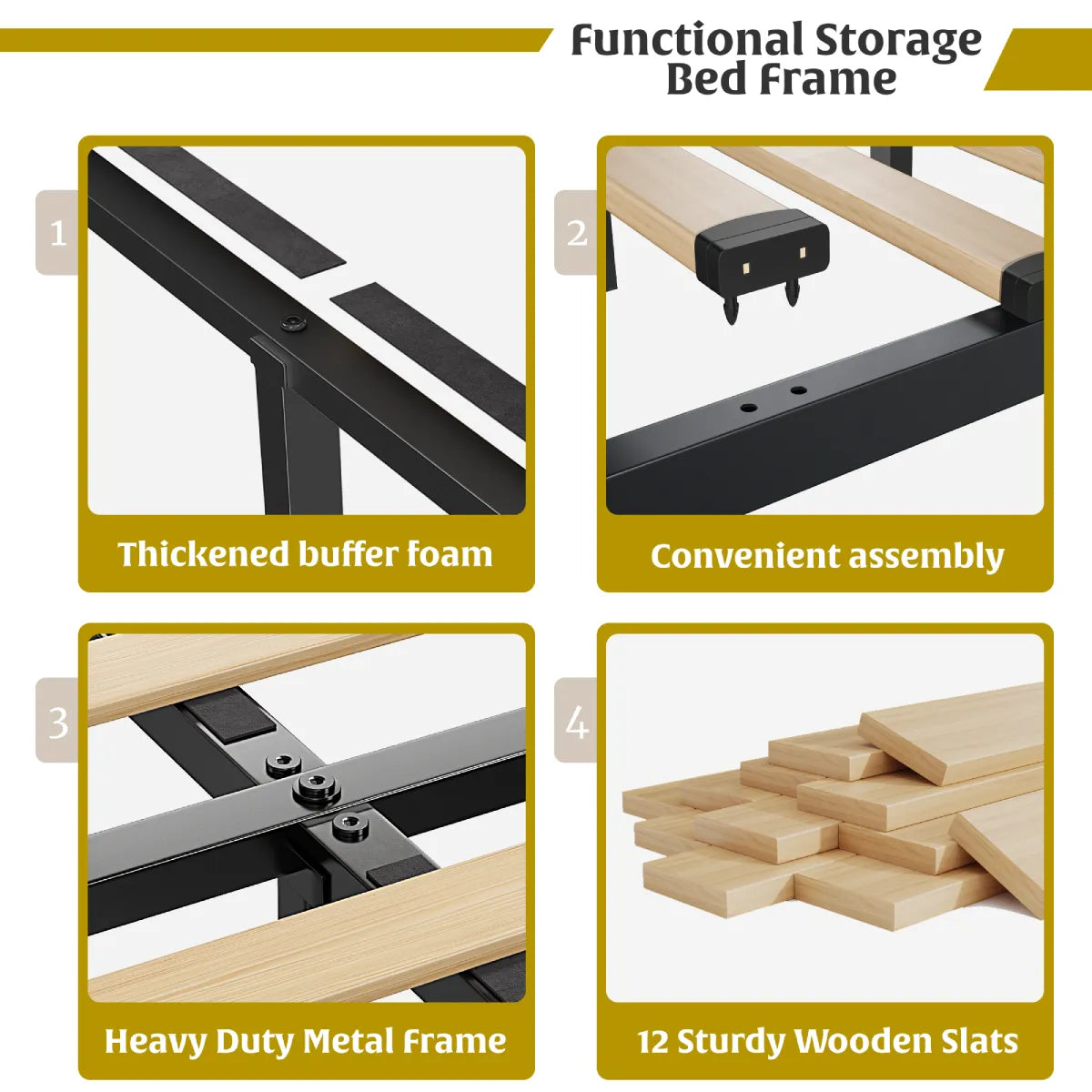 Stay organized with three smooth-gliding wheeled drawers, offering ample space for clothes, bedding, and more. Keep your bedroom clutter-free while enjoying quick access to essentials.