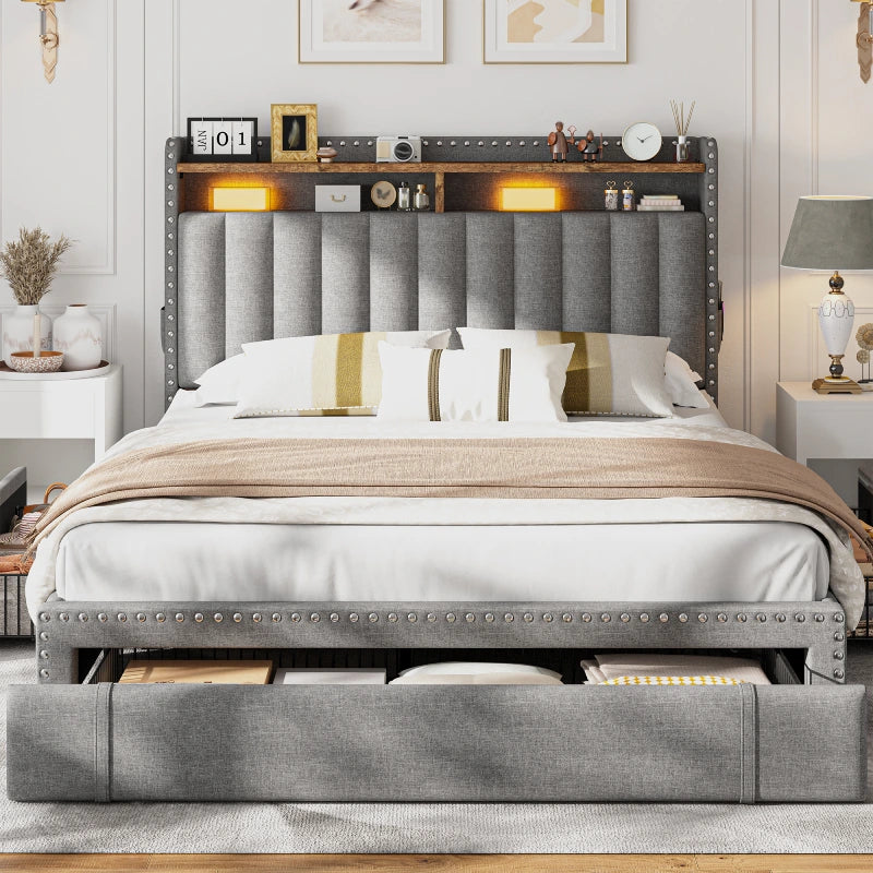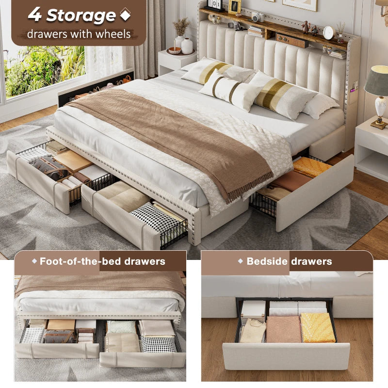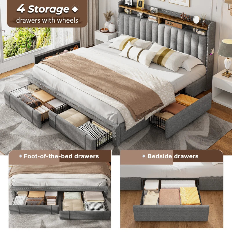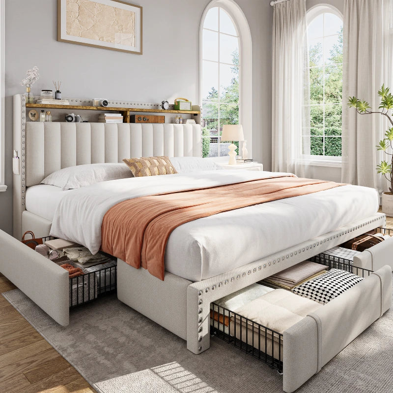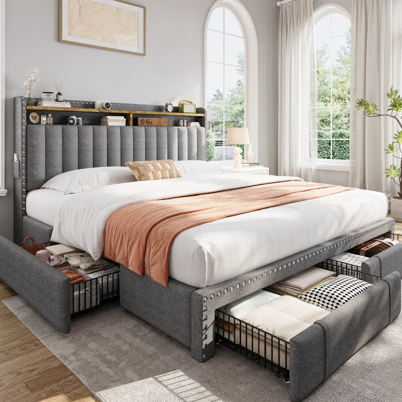 I was honestly surprised by how much I love this bed frame. The storage drawers glide smoothly and are super handy for keeping extra blankets and clothes. Assembly was quick—took me about 30 minutes solo, and I didn’t even need tools. It feels really sturdy with no squeaks or wobbling, and the upholstery looks way more premium than I expected. The design is both practical and stylish—definitely worth it!