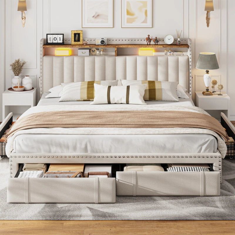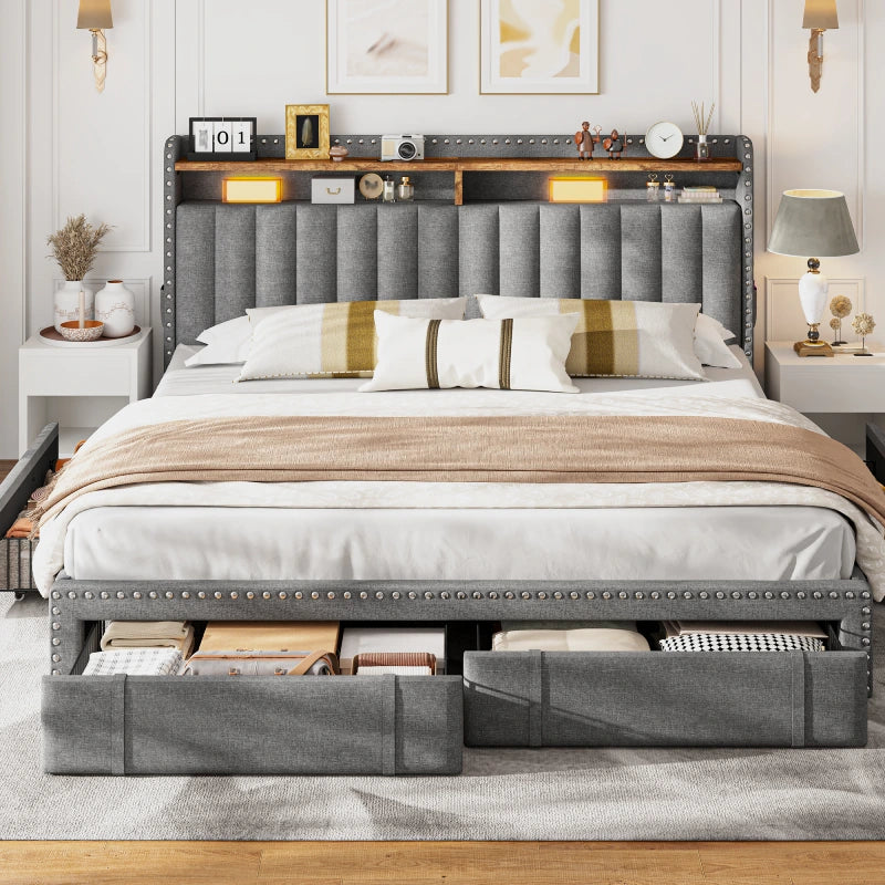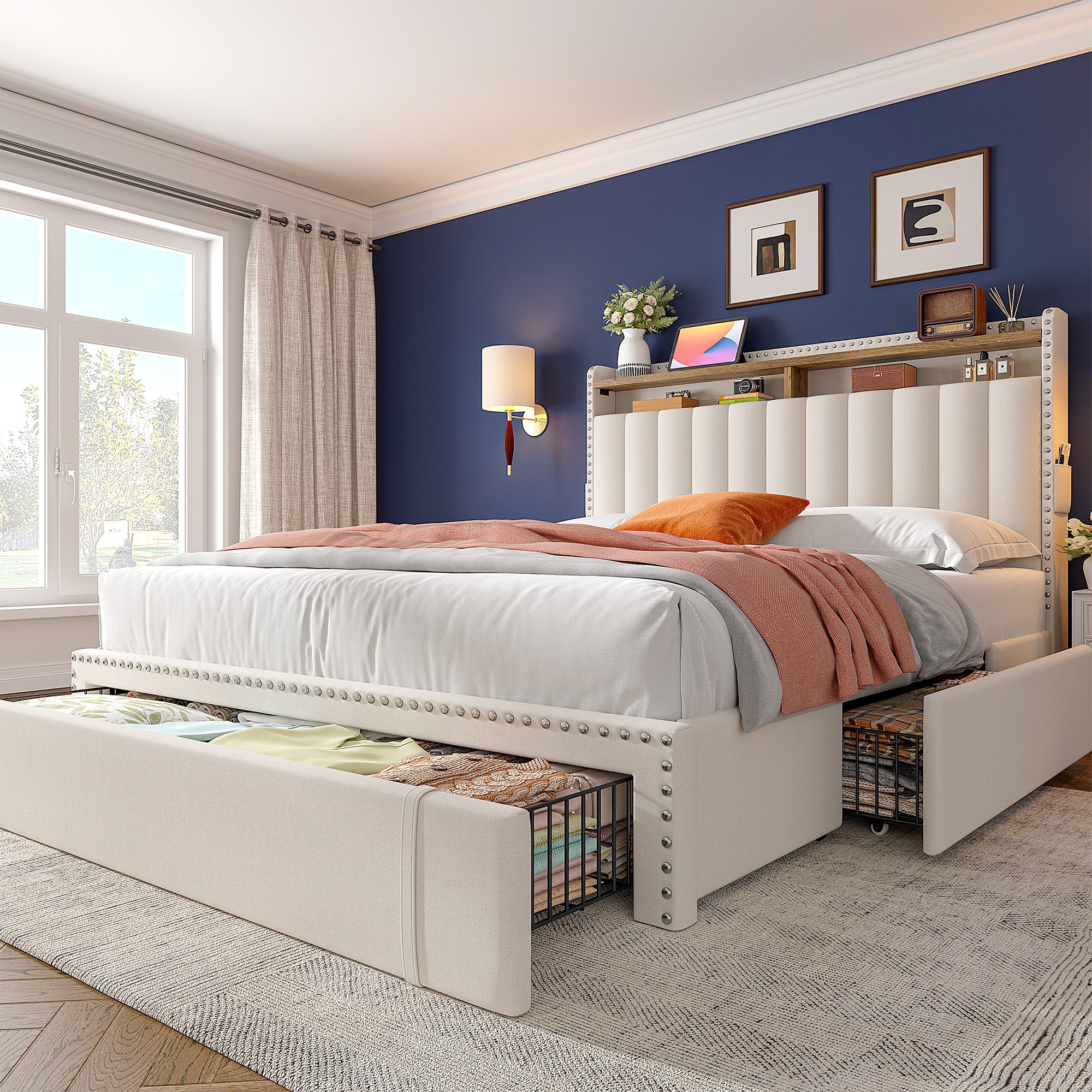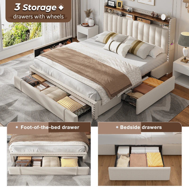 I was honestly surprised by how much I love this bed frame. The storage drawers glide smoothly and are super handy for keeping extra blankets and clothes. Assembly was quick—took me about 30 minutes solo, and I didn’t even need tools. It feels really sturdy with no squeaks or wobbling, and the upholstery looks way more premium than I expected. The design is both practical and stylish—definitely worth it!