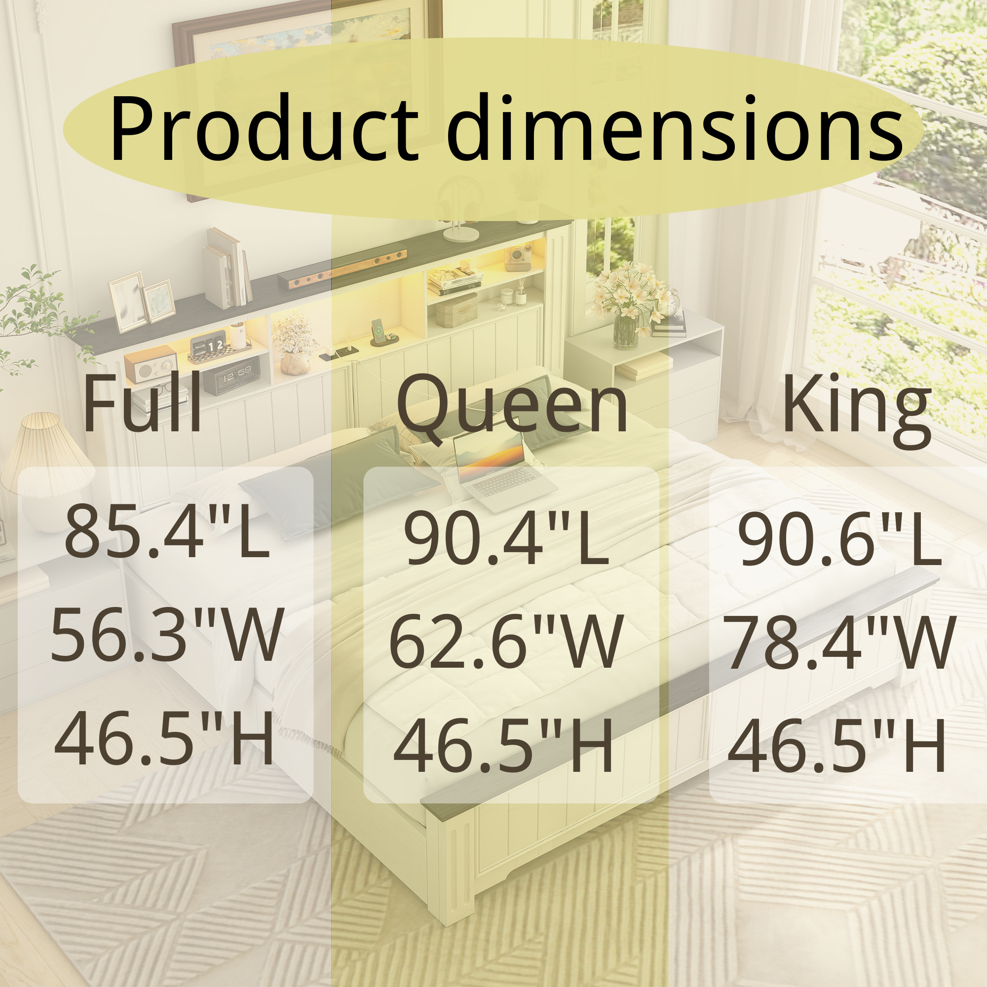 Queen: 90.4"L×62.6"W×46.5"H