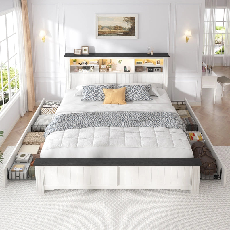 Designed for durability, convenience, and superior organization, this bed frame combines robust construction with smart features to elevate your bedroom.