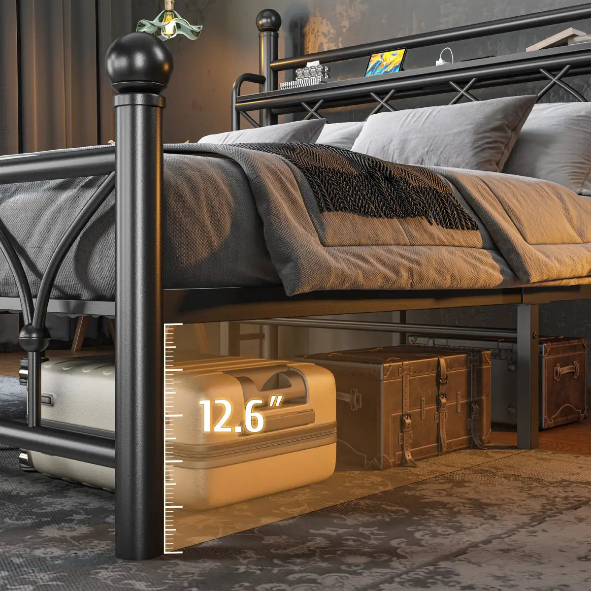 Running out of space for storage? With 12.6" height, this bed frame offers plenty of underbed room for bins, suitcases, or seasonal items—perfect for keeping small bedrooms neat and clutter-free.