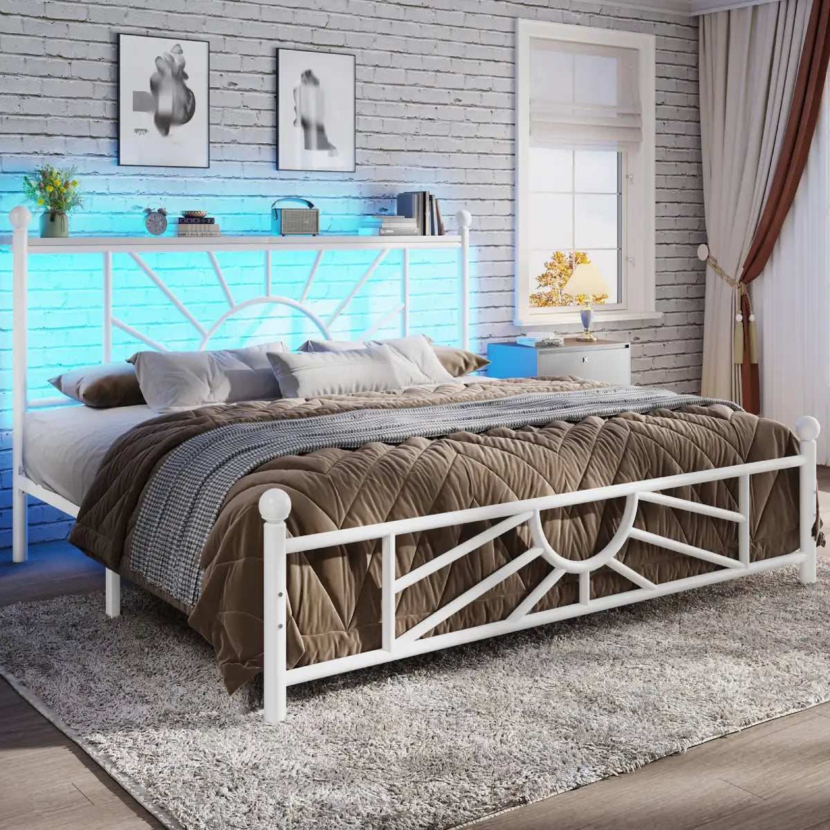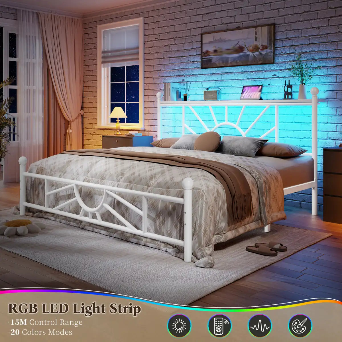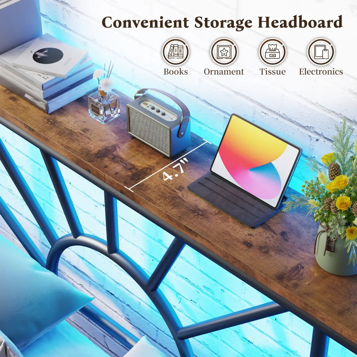 Set the tone for movie nights, late-night reading, or a cozy vibe with just a click. The remote-controlled LED strip lights offer a full spectrum of color under your headboard—functional lighting meets modern ambiance.