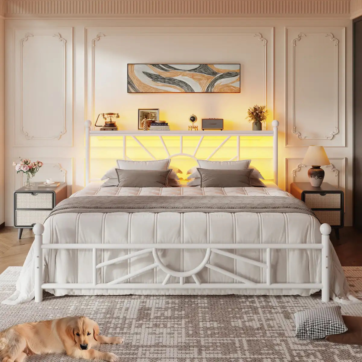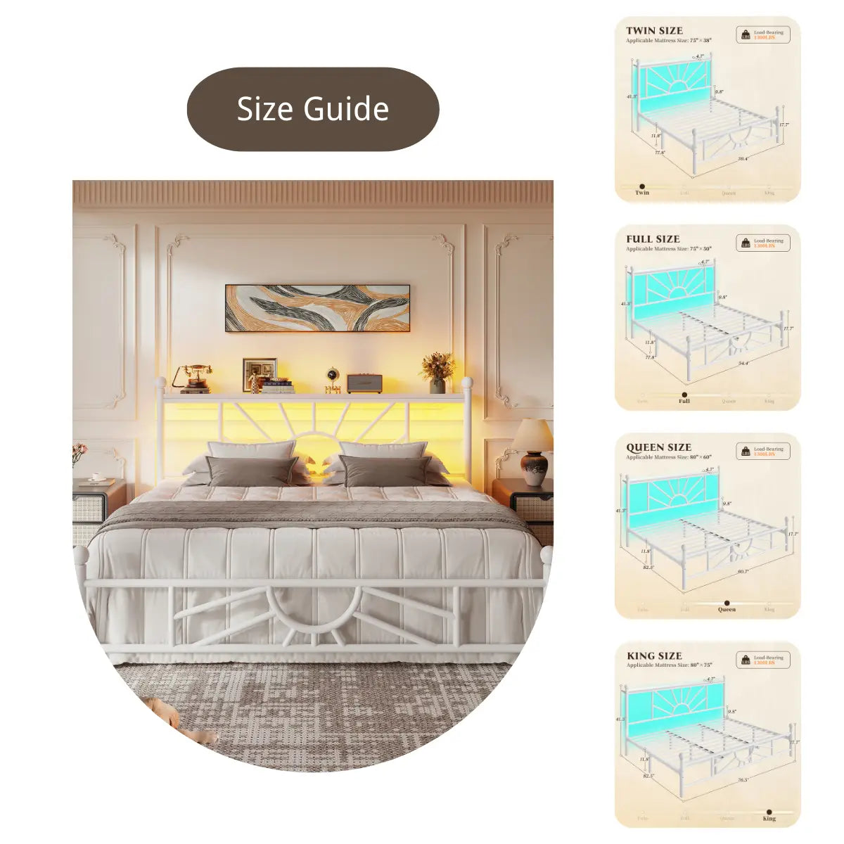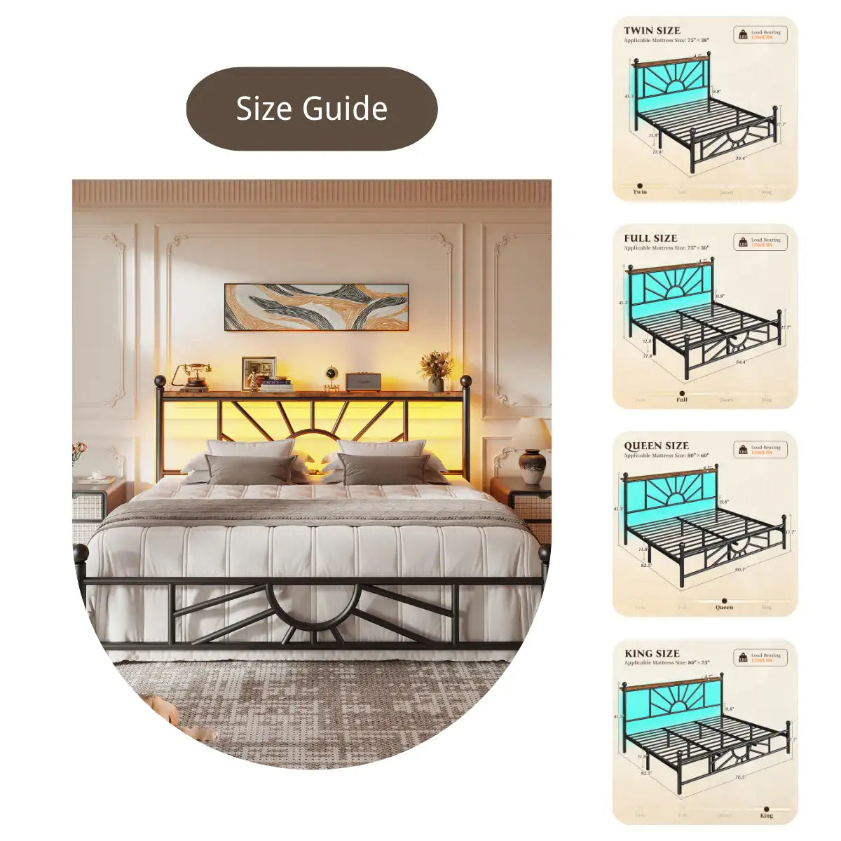 This metal bed frame, inspired by the timeless beauty of sunflowers, suits any room—whether it’s a cozy guest space or a spacious master suite.