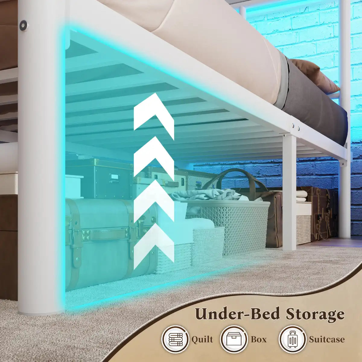 With 10.2 inches of clearance under the bed. Tuck away blankets, off-season clothes, or bulky items in the spacious hidden compartment. Out of sight, totally organized—and your room stays effortlessly tidy.