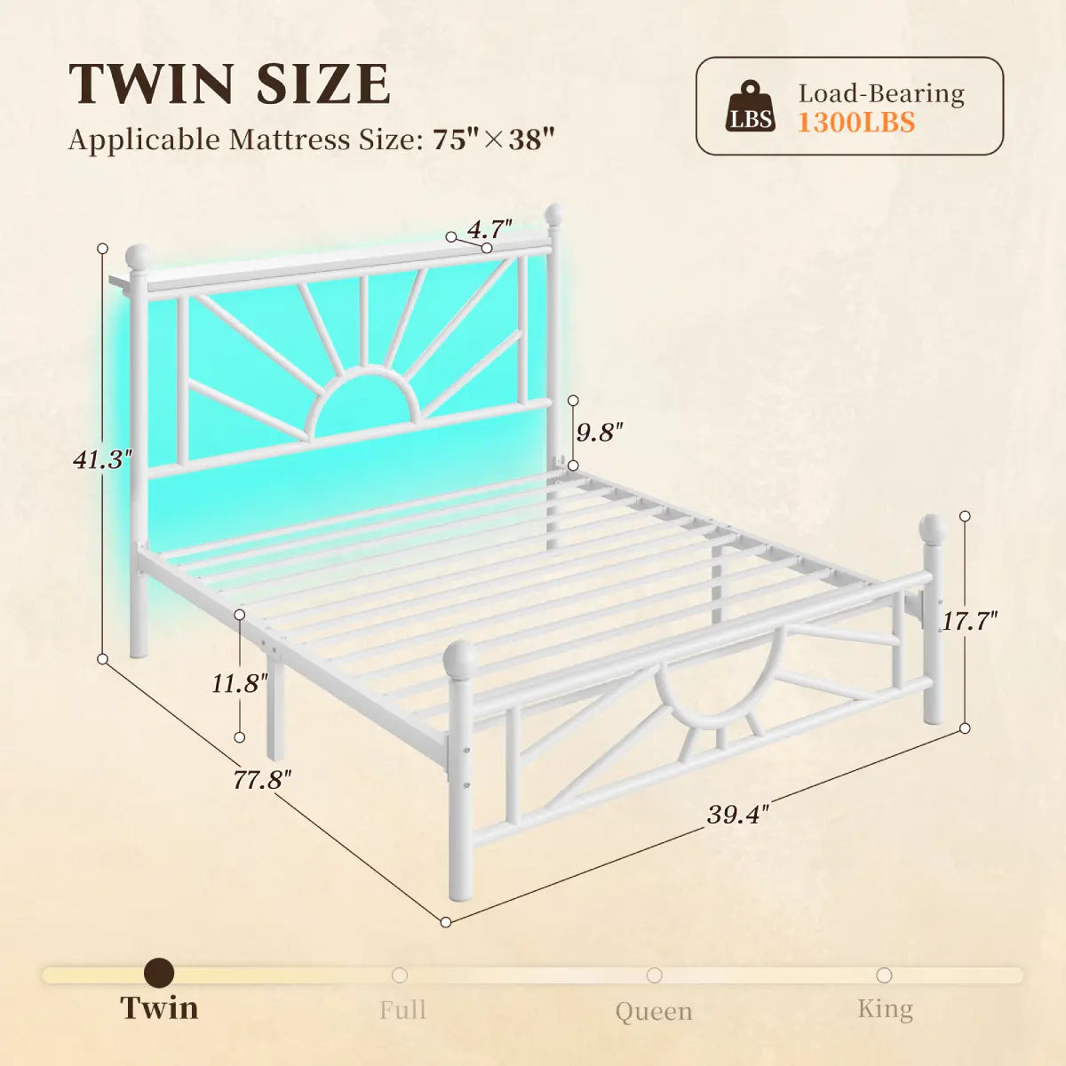 Twin: 77.8"L x 39.4"W x 41.3"H