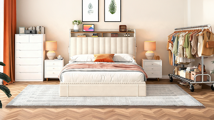 This high-tech bedside lamp hub adds a touch of brilliance to your bedroom. Featuring 20 color-adjustable LEDs (remotely controllable), it creates ambient lighting or provides soft nighttime illumination. Built-in dual outlets and two USB ports keep devices charged and cables organized—perfect for connecting lamps, phones, or tablets.