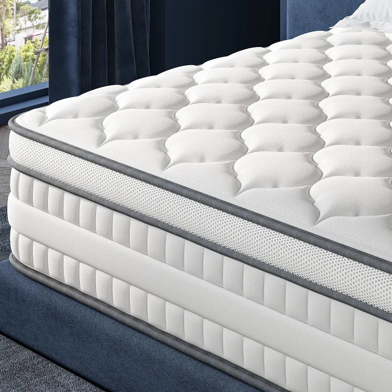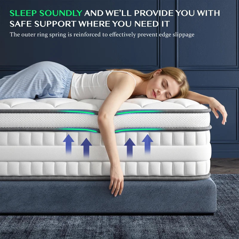 The hybrid mattress is wrapped in soft, premium knit fabric and designed with a breathable ventilation structure that promotes continuous airflow. Heat and moisture dissipate quickly, keeping your sleep surface cool, dry, and comfortable—especially beneficial for hot sleepers or those sensitive to temperature changes.