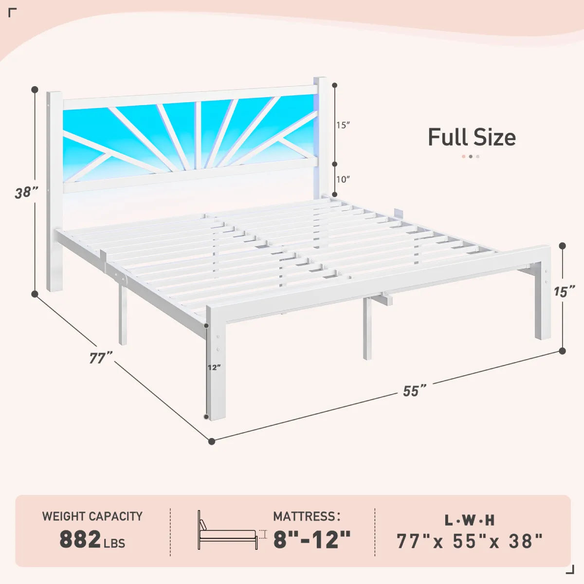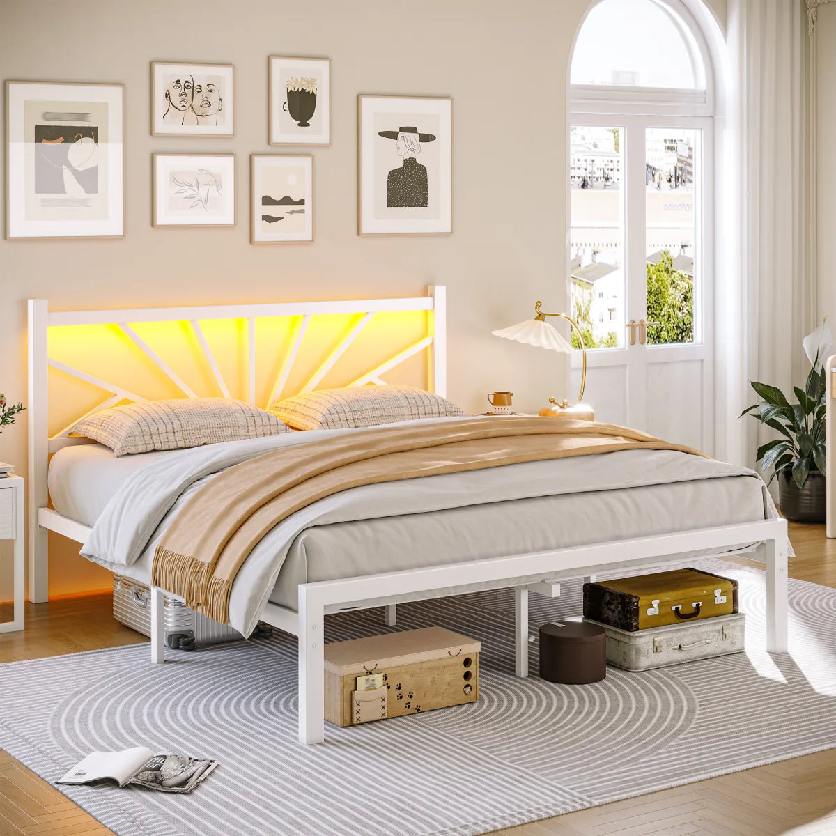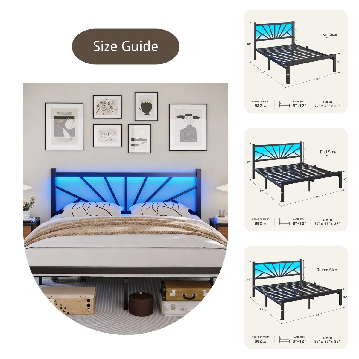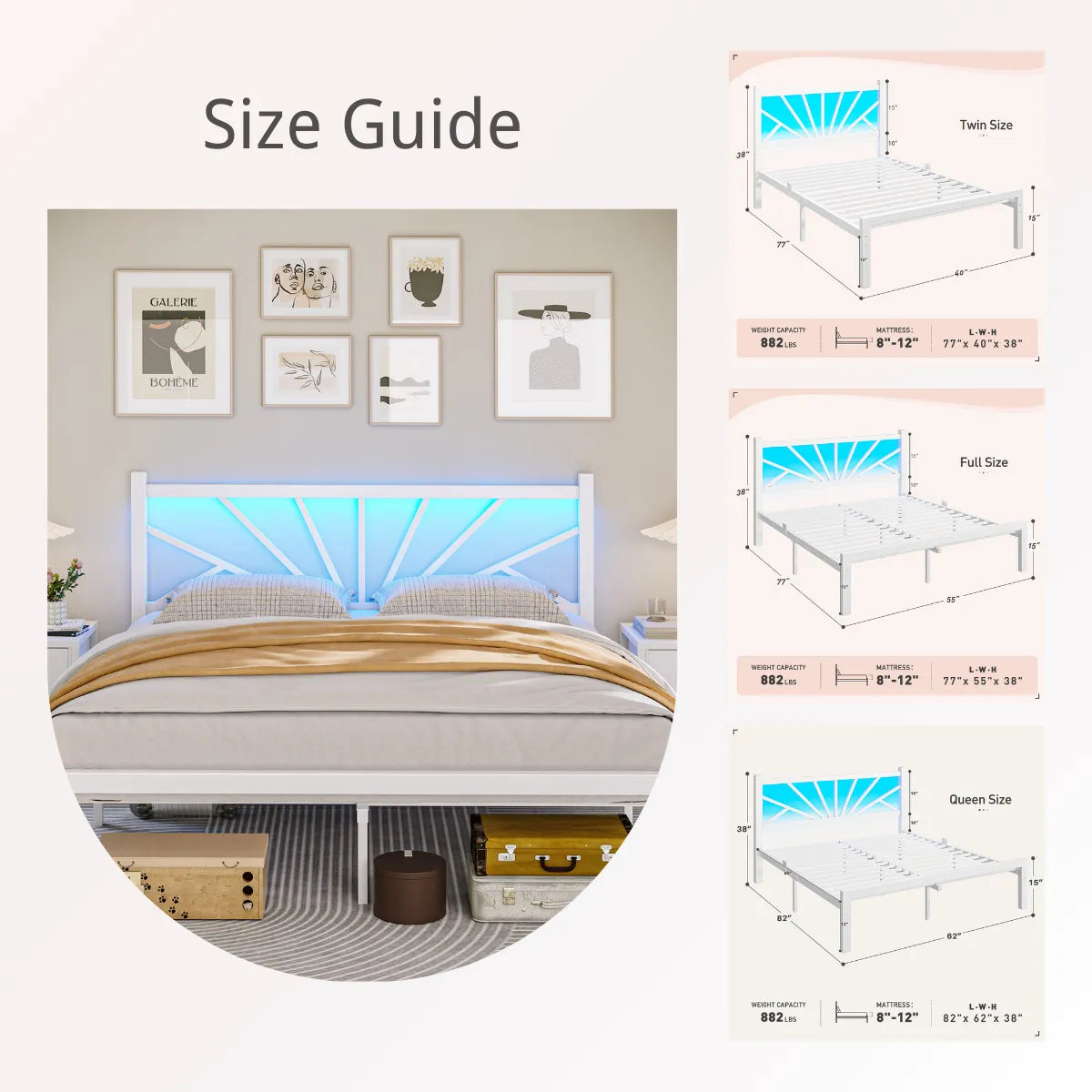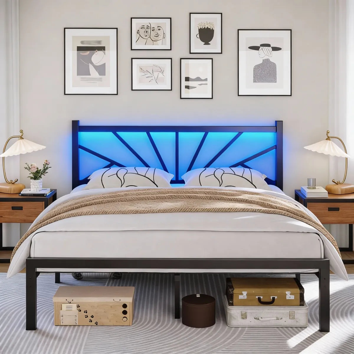 This bed frame comes with an LED-backlit headboard, adding a modern touch while providing soft and ambient lighting. The built-in LED lights offer adjustable brightness, creating a cozy and relaxing atmosphere. Whether reading or unwinding, you’ll enjoy the perfect soft lighting that enhances your overall bedroom experience.