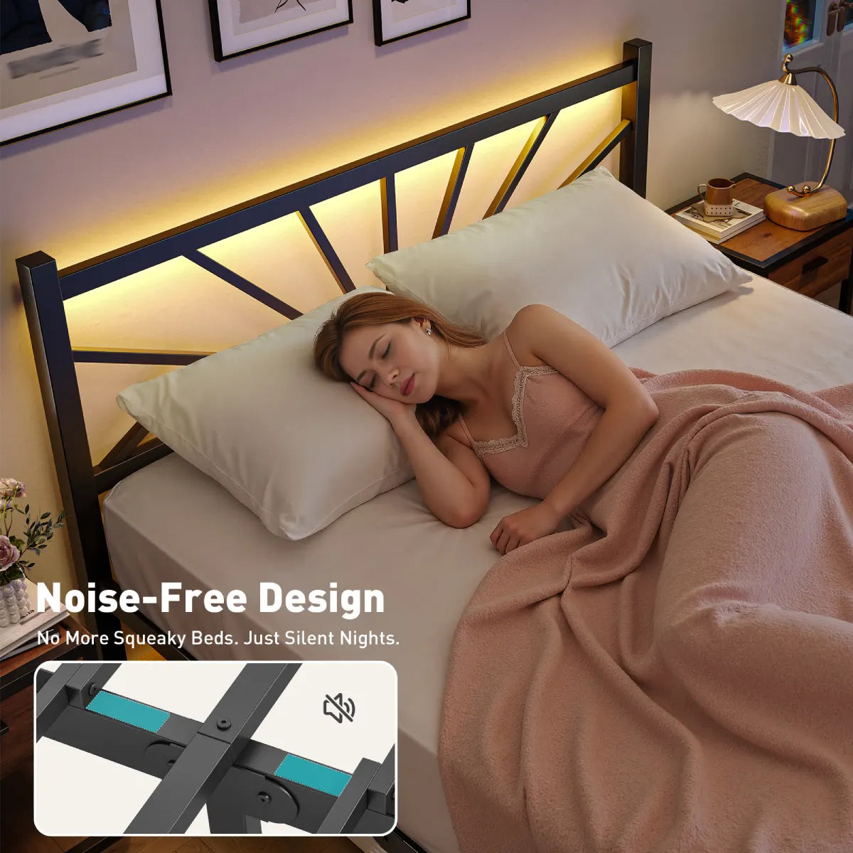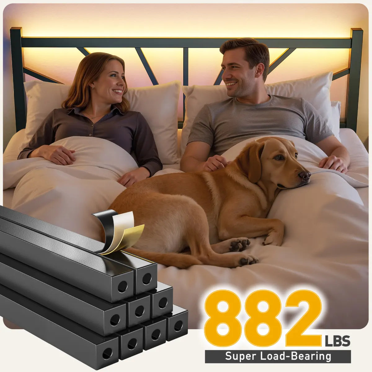 Made with high-quality steel, this bed frame reliably supports up to 882lbs, ensuring long-lasting stability for everyday use. The robust construction is designed to safely bear significant weight, providing peace of mind whether used by one or multiple people. No matter which mattress you choose, you can rest easy knowing the frame remains steady and secure, contributing to a peaceful night’s sleep.