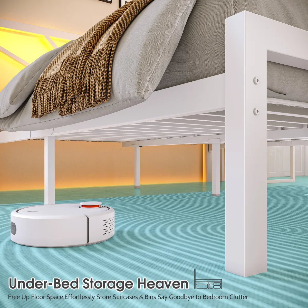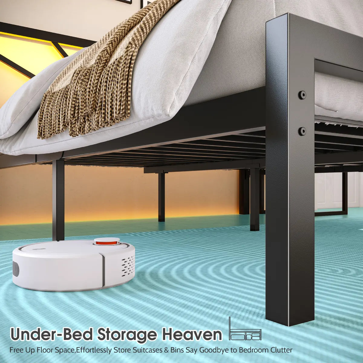 The bed features ample 12" H under-bed storage space, perfect for storing boxes, luggage, or other items. This design maximizes bedroom space and keeps storage organized and tidy. The extra storage space under the bed helps reduce clutter, keeping your room neat and tidy.