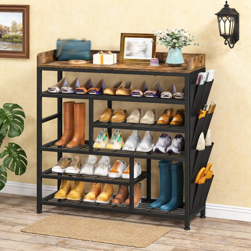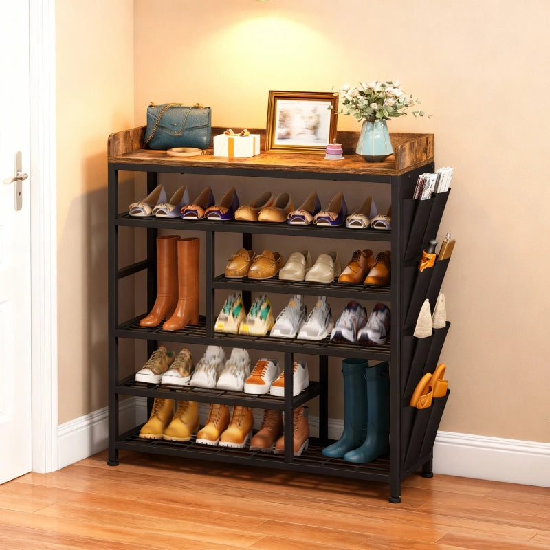 This sturdy shoe rack features adjustable shelves to fit your needs. If you own several pairs of boots, simply remove two tiers to create extra vertical space—perfect for storing taller footwear with ease.