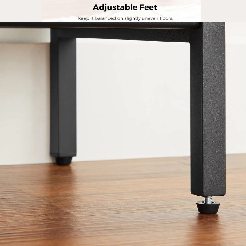 Unlike typical entryway shoe racks, our industrial-style shoe organizer combines a robust metal grid frame with a solid wooden board for enhanced strength and durability. Whether fully loaded or lightly used, this rustic shoe rack maintains excellent weight-bearing capacity. Plus, it features four adjustable feet to ensure stability on uneven floors while preventing scratches on your flooring.