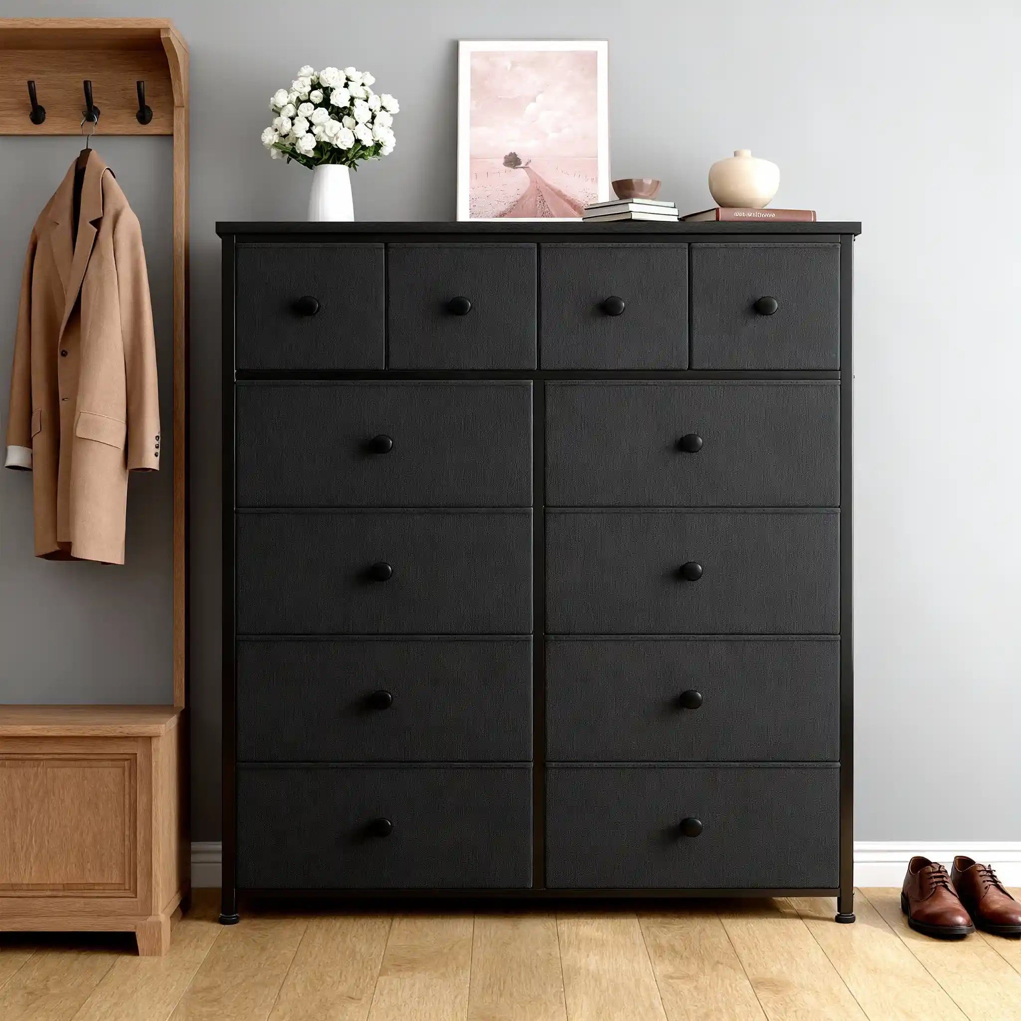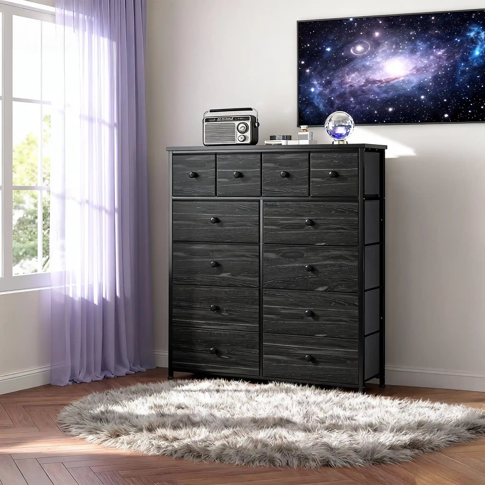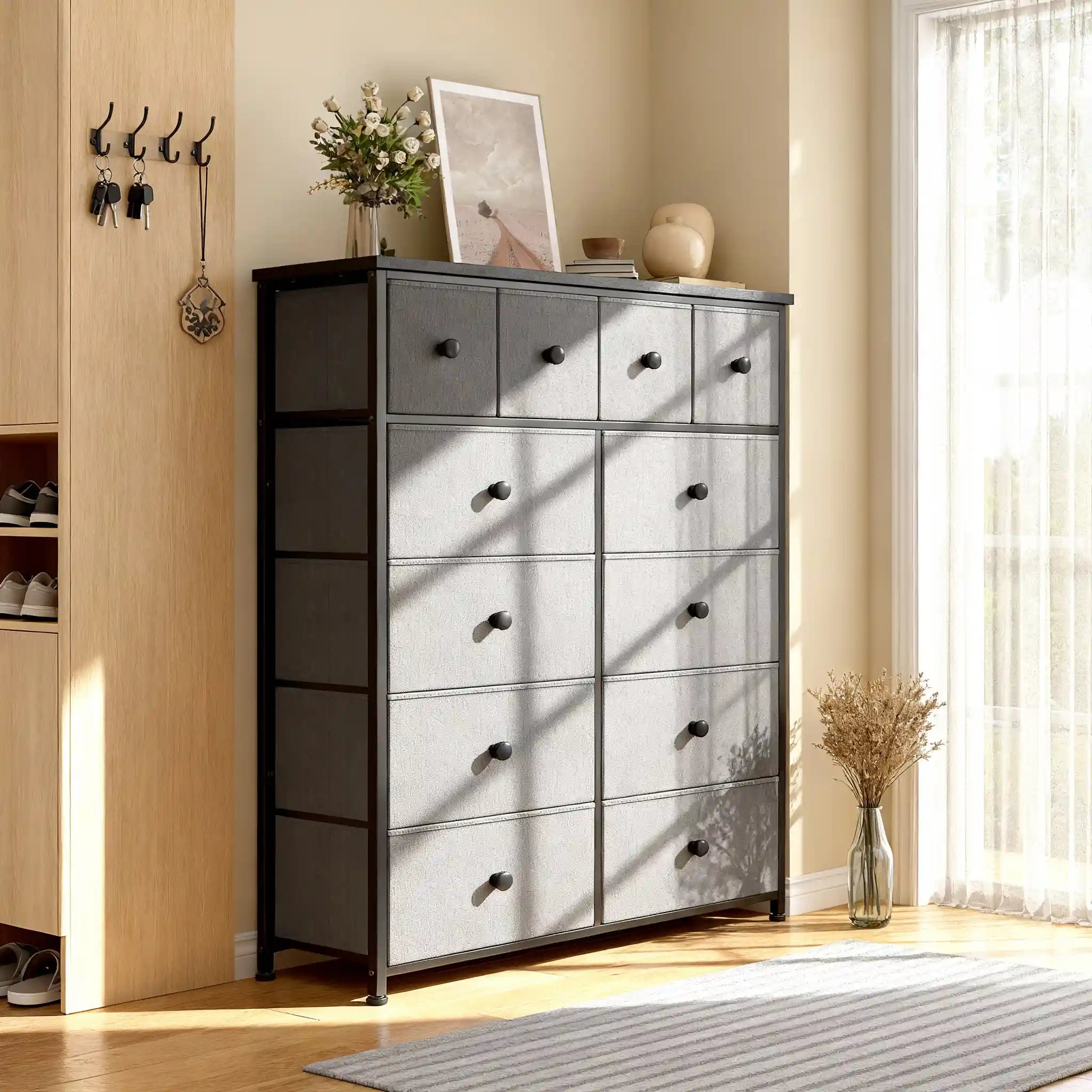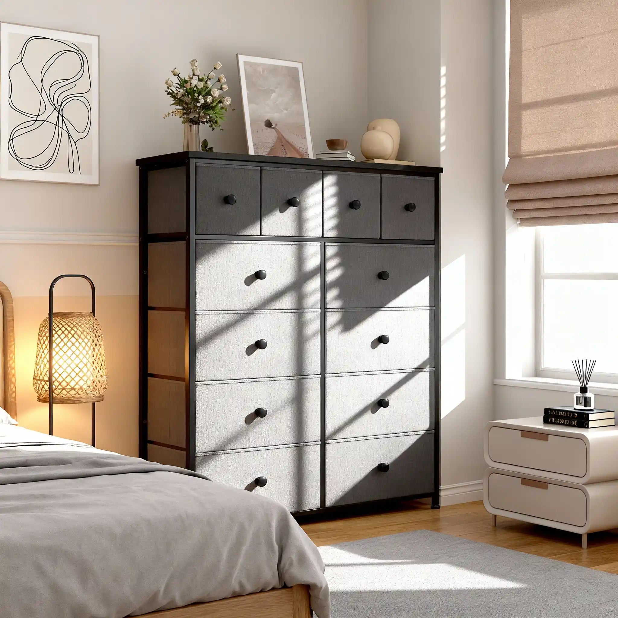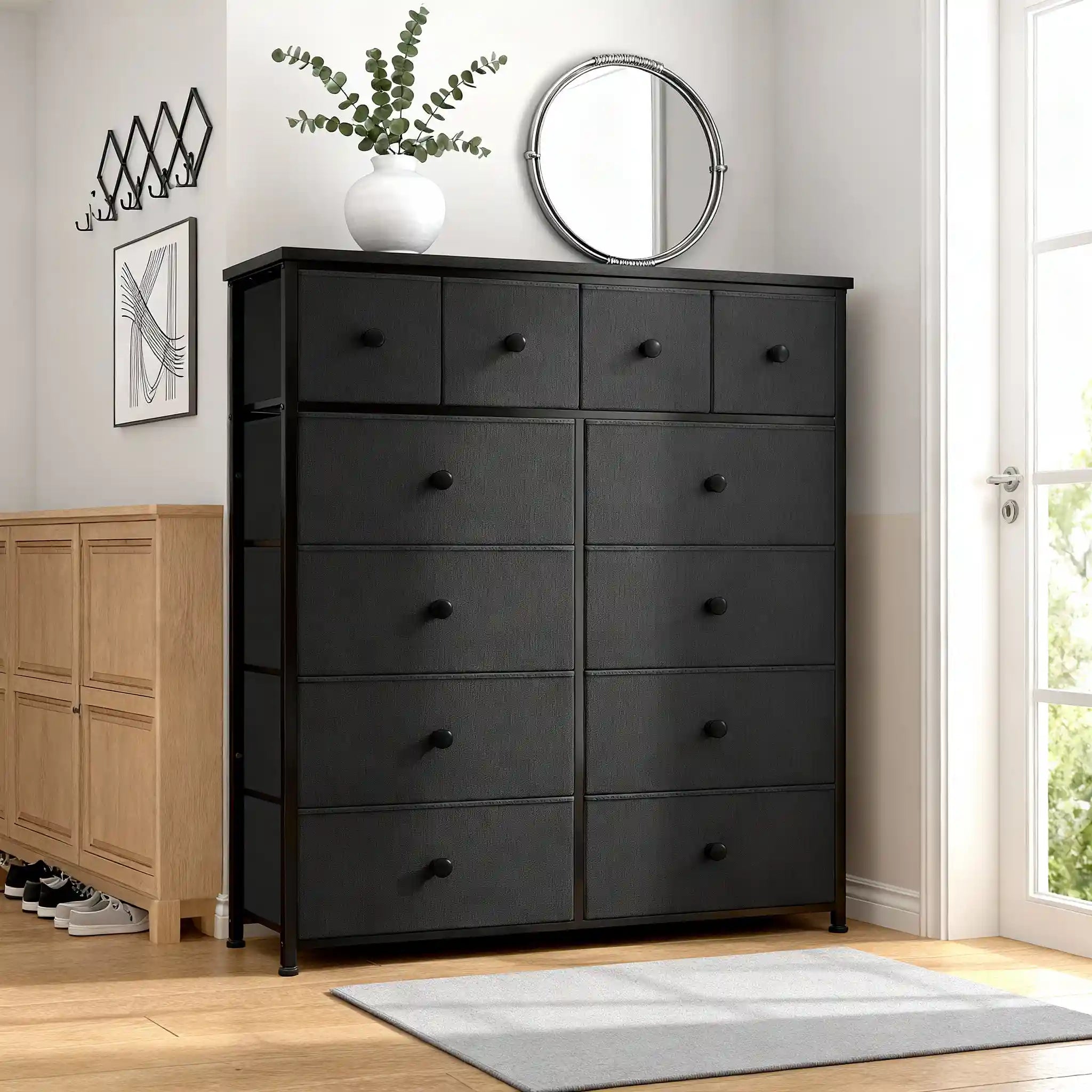 12 deep drawers easily hold 48–64 jeans or 32–48 sweaters, plus 40–60 socks/underwear (Max load: 22 lbs per drawer). Ideal for bedrooms, closets, livingrooms, or hallways, its vertical design offers privacy while keeping essentials neatly organized.