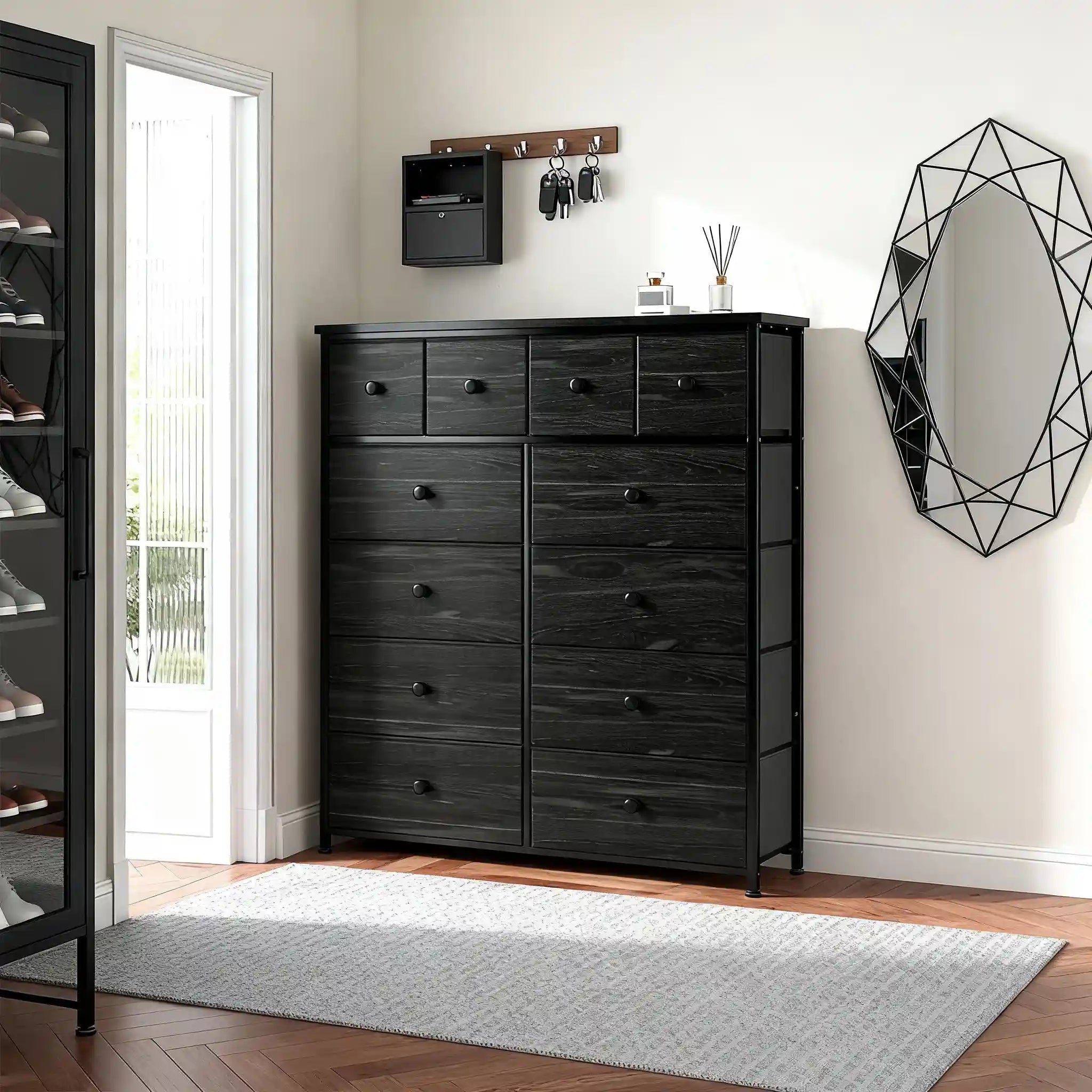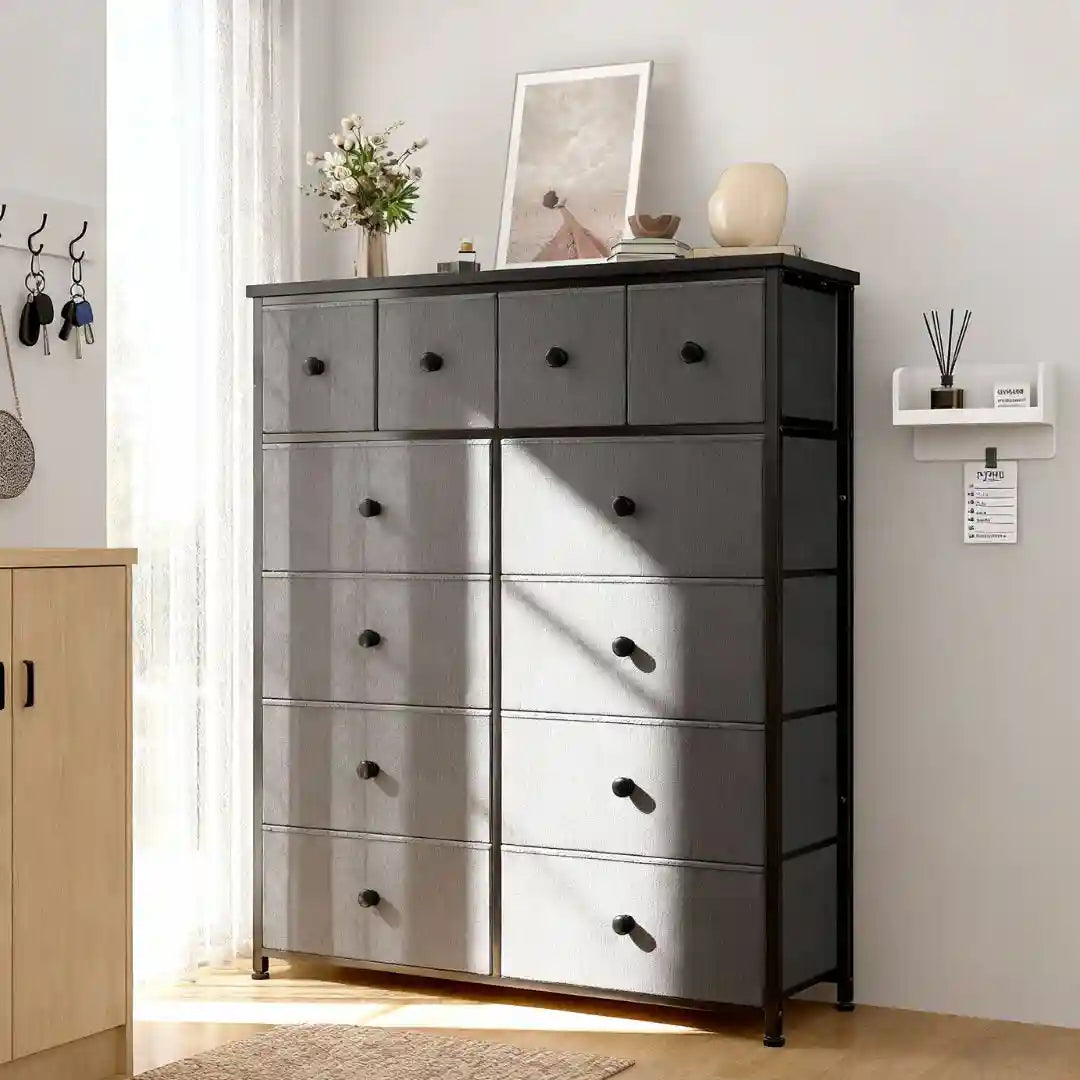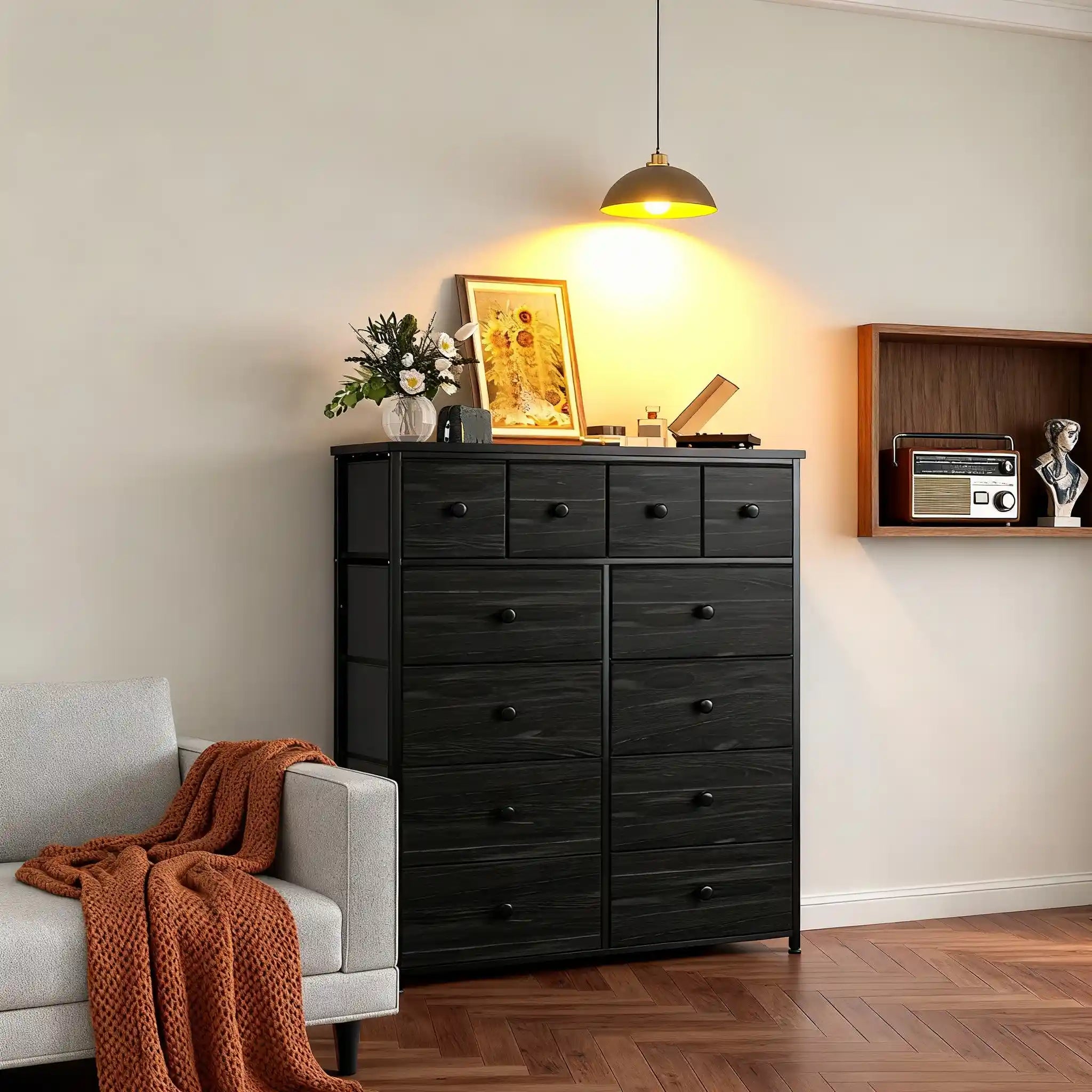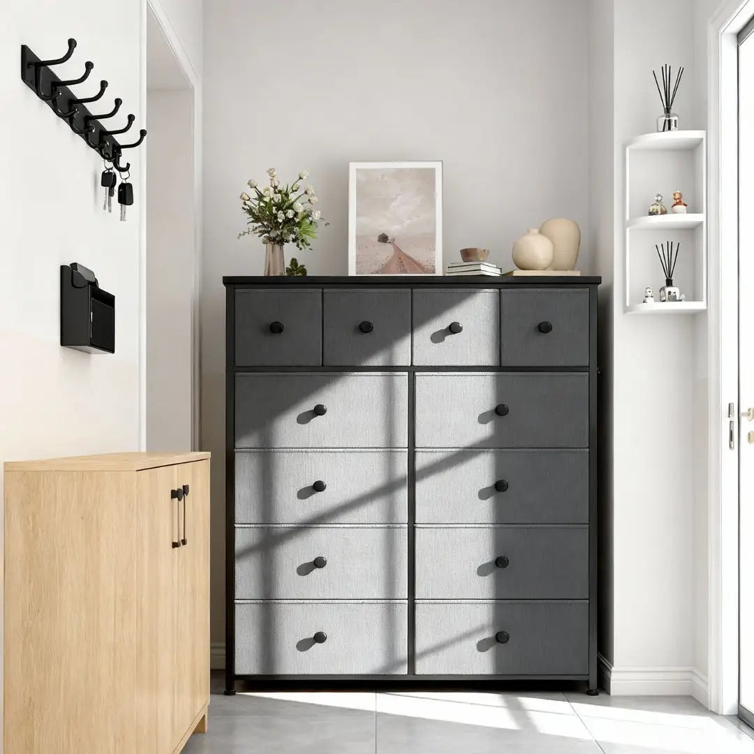 12 deep drawers easily hold 48–64 jeans or 32–48 sweaters, plus 40–60 socks/underwear (Max load: 22 lbs per drawer). Ideal for bedrooms, closets, livingrooms, or hallways, its vertical design offers privacy while keeping essentials neatly organized.