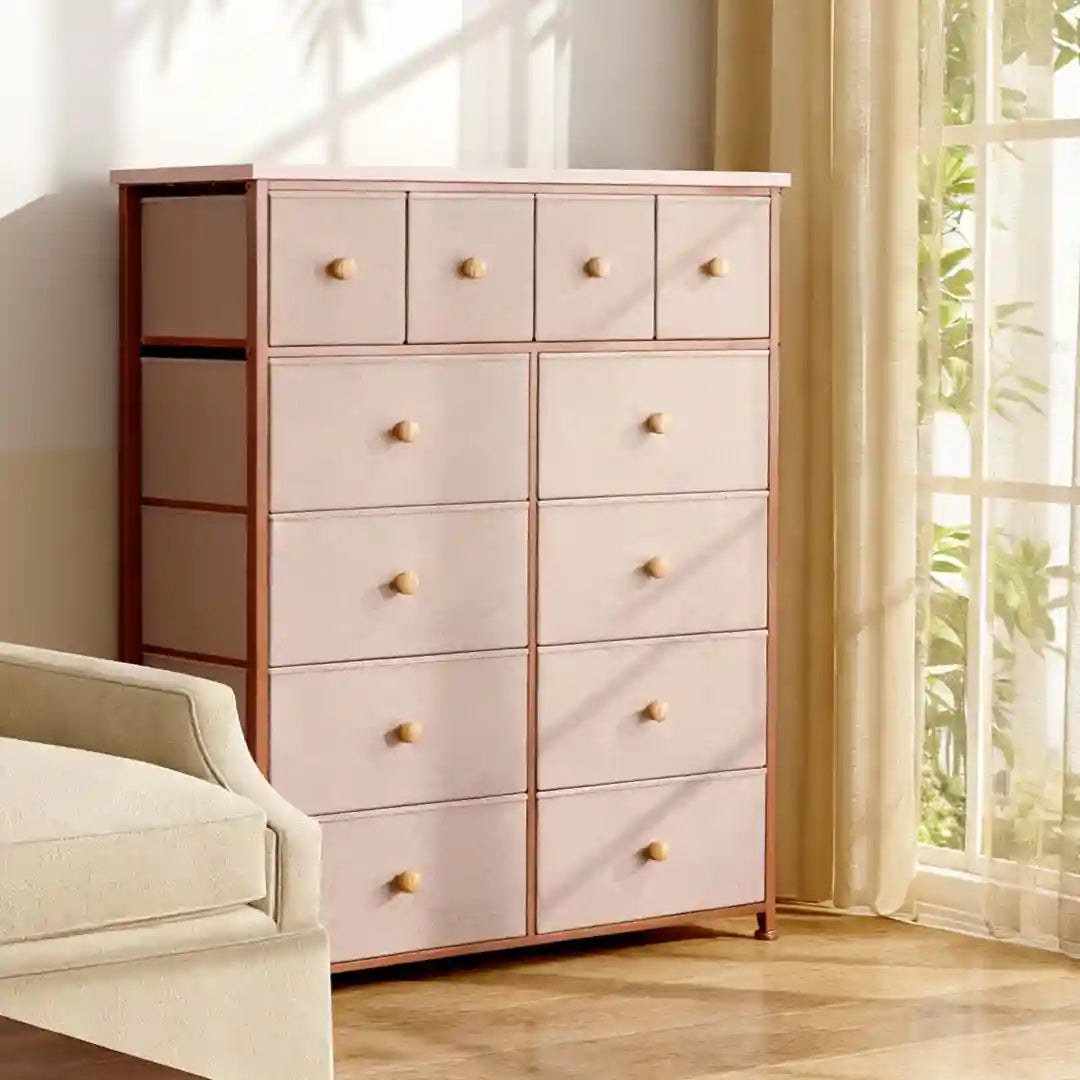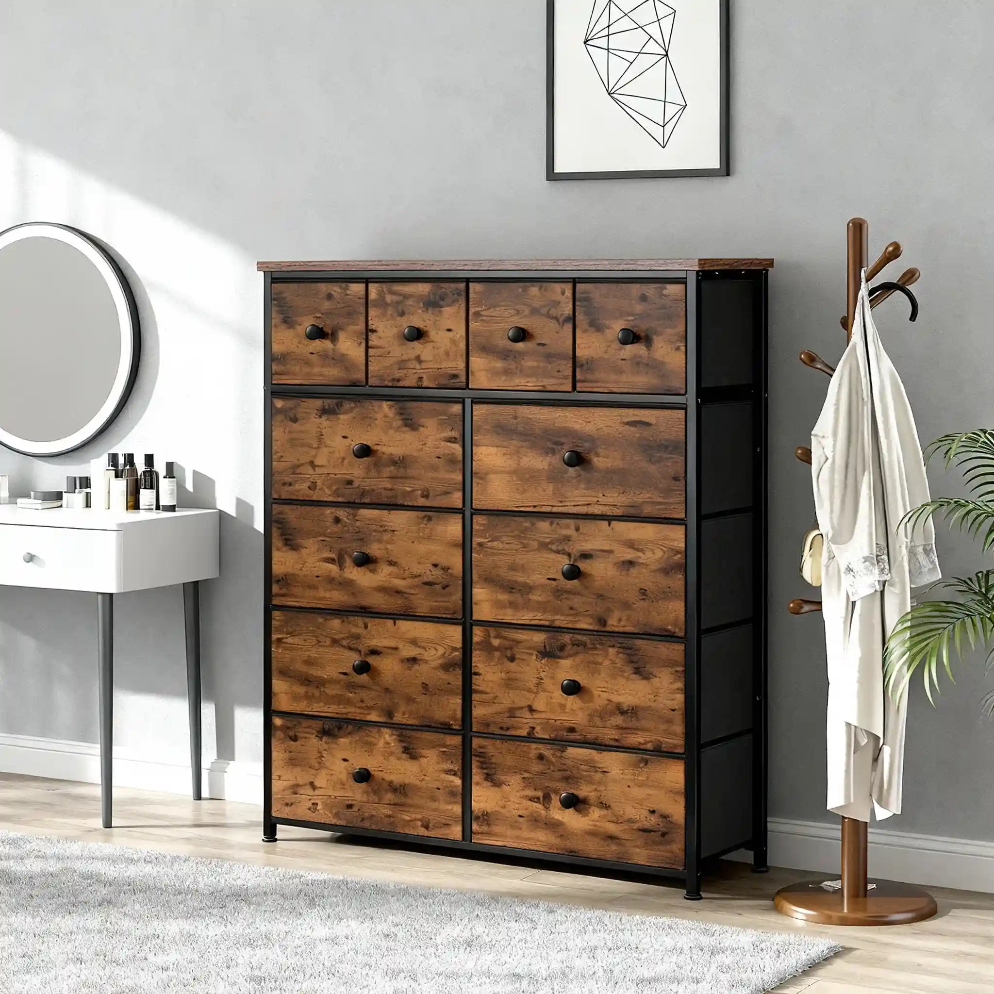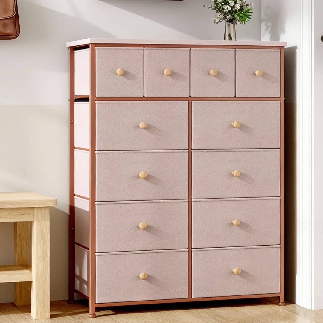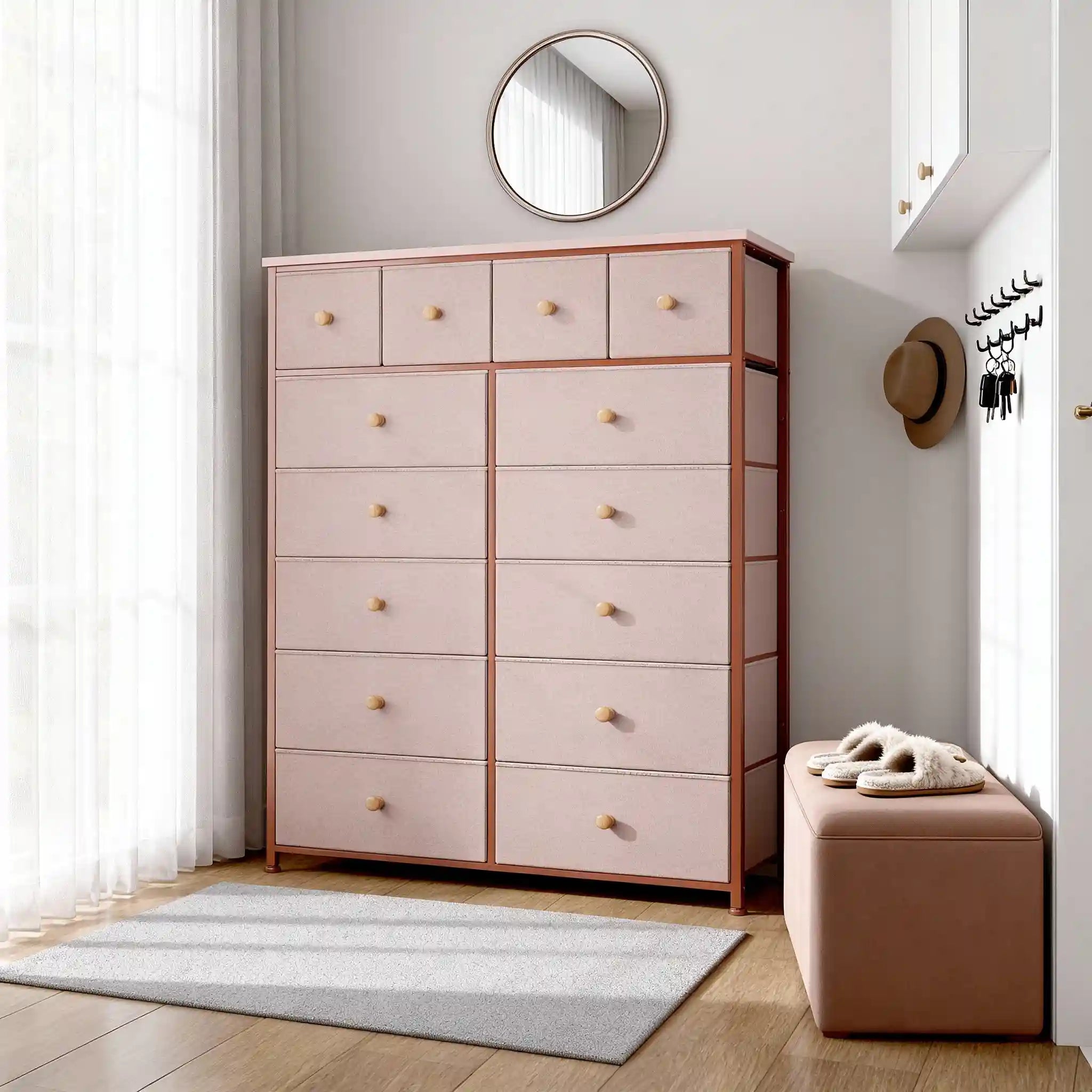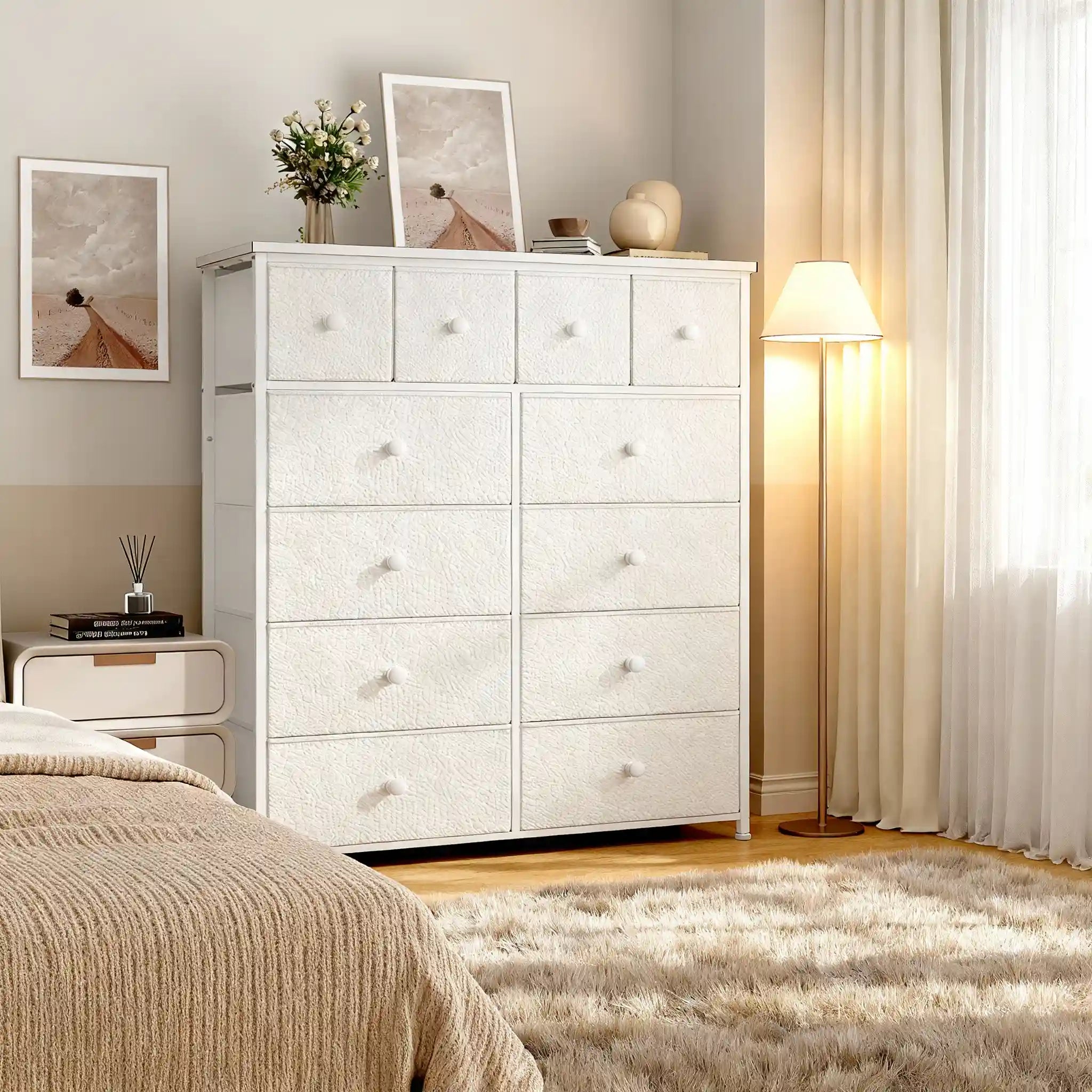 12 deep drawers easily hold 48–64 jeans or 32–48 sweaters, plus 40–60 socks/underwear (Max load: 22 lbs per drawer). Ideal for bedrooms, closets, livingrooms, or hallways, its vertical design offers privacy while keeping essentials neatly organized.