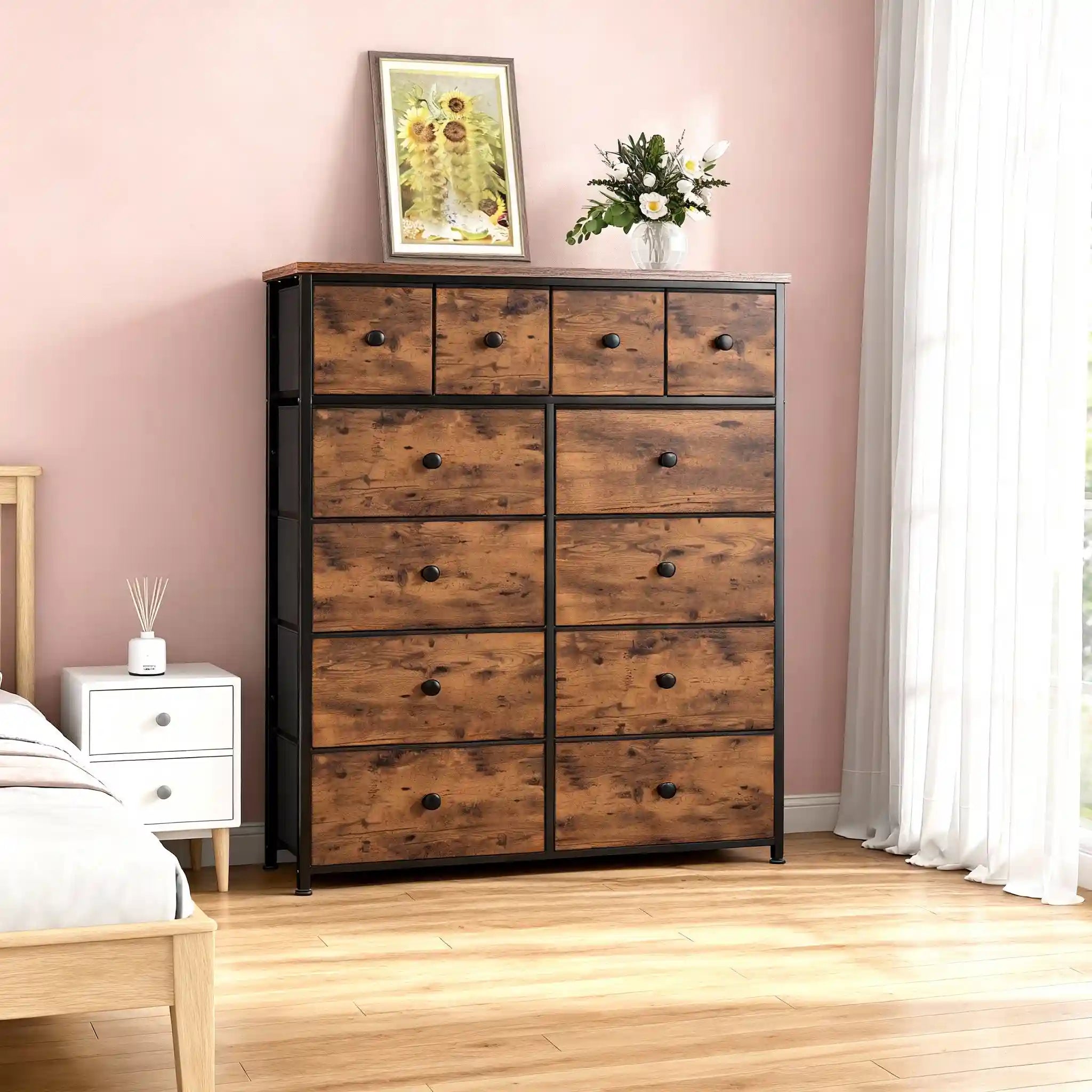 Sturdy X-braced steel frame offers stable support and ensures years of use. Anti-tip hardware ensures the dresser remains upright. Adjustable leveling feet prevent wobbling on uneven floors and protect your floors from scratches. 4 reinforced support parts on the back add further stability, ensuring the frame won’t deform or collapse.