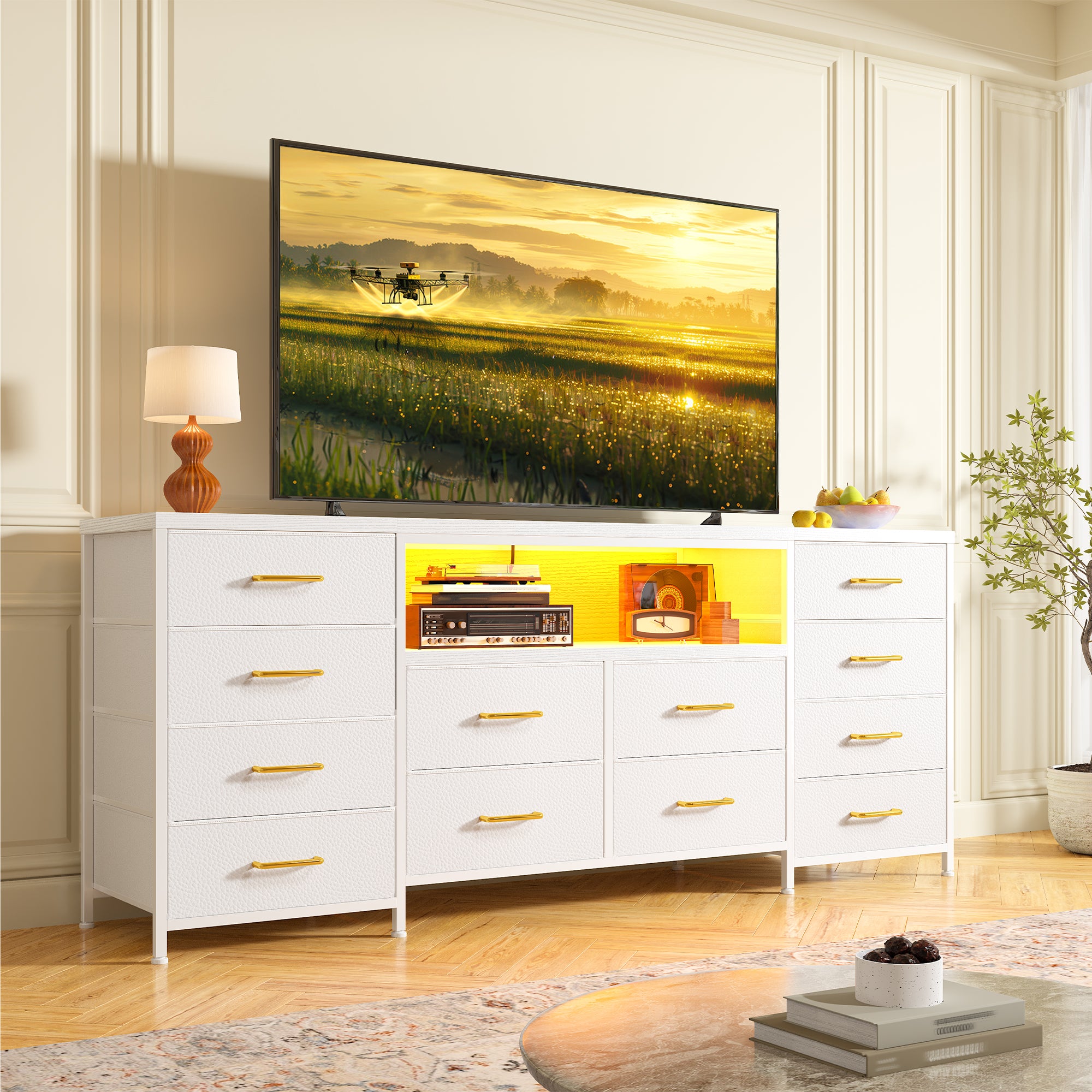 Our TV stand has 12 Spacious Drawers & 1 Open Storage Shelf, which