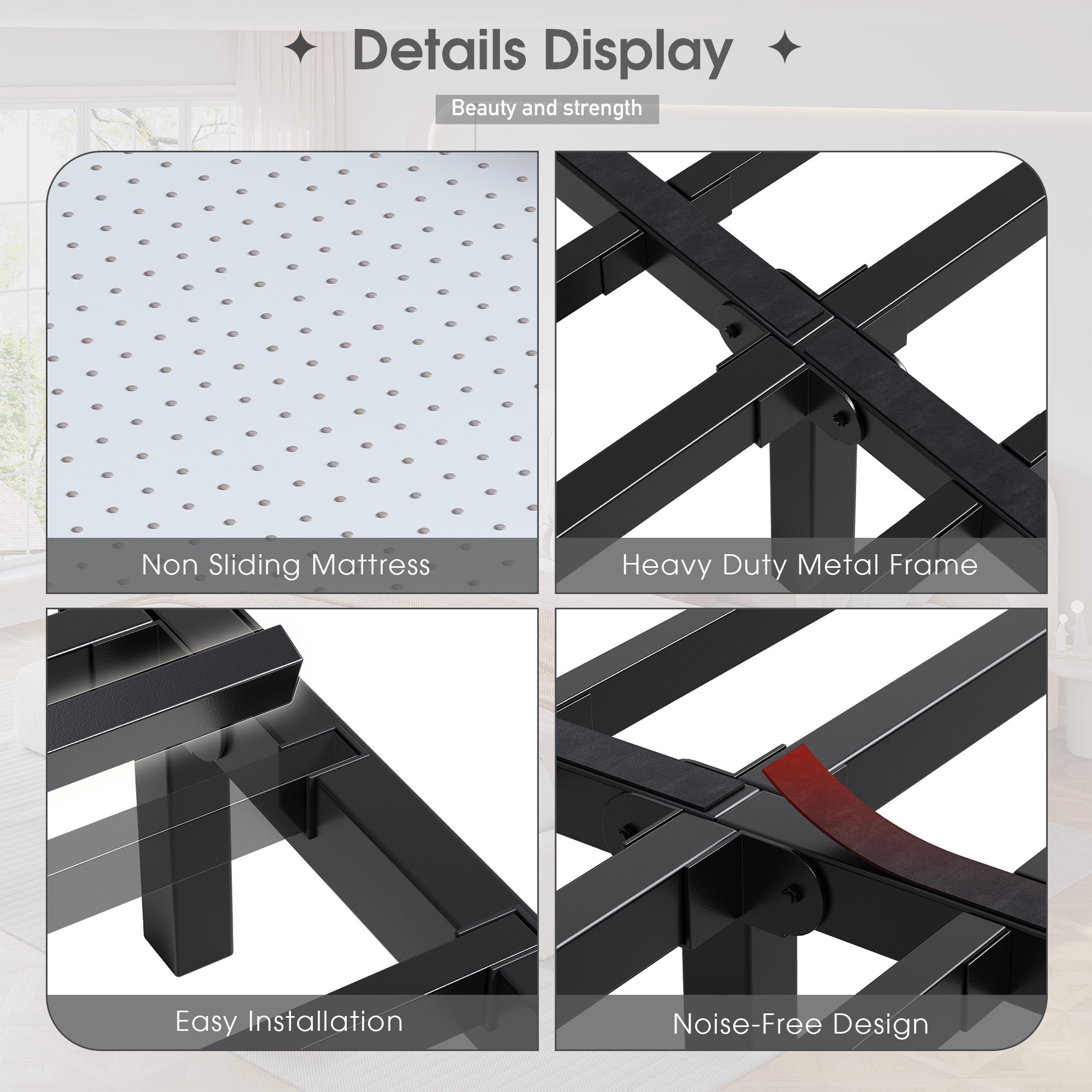Built with a heavy-duty steel frame that supports up to 990 lbs, this bed frame provides unmatched stability. The noise-free slats eliminate creaks and movement, ensuring peaceful, uninterrupted rest every night.