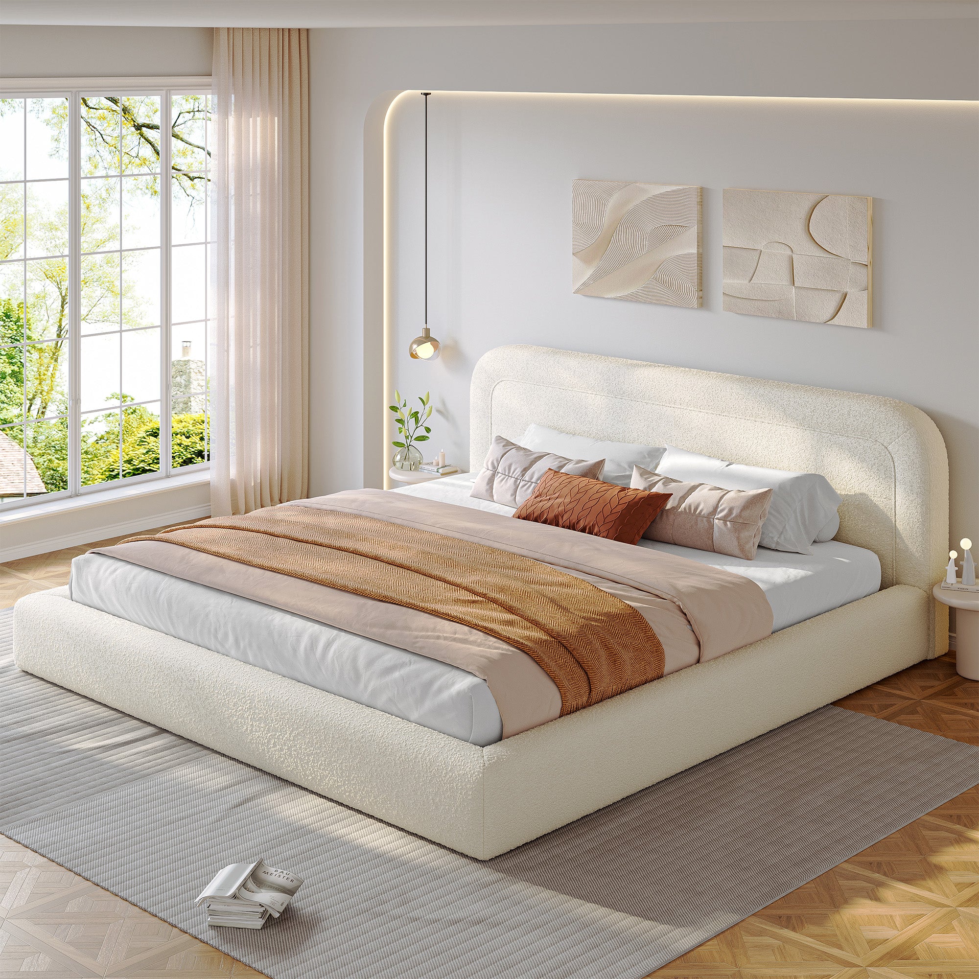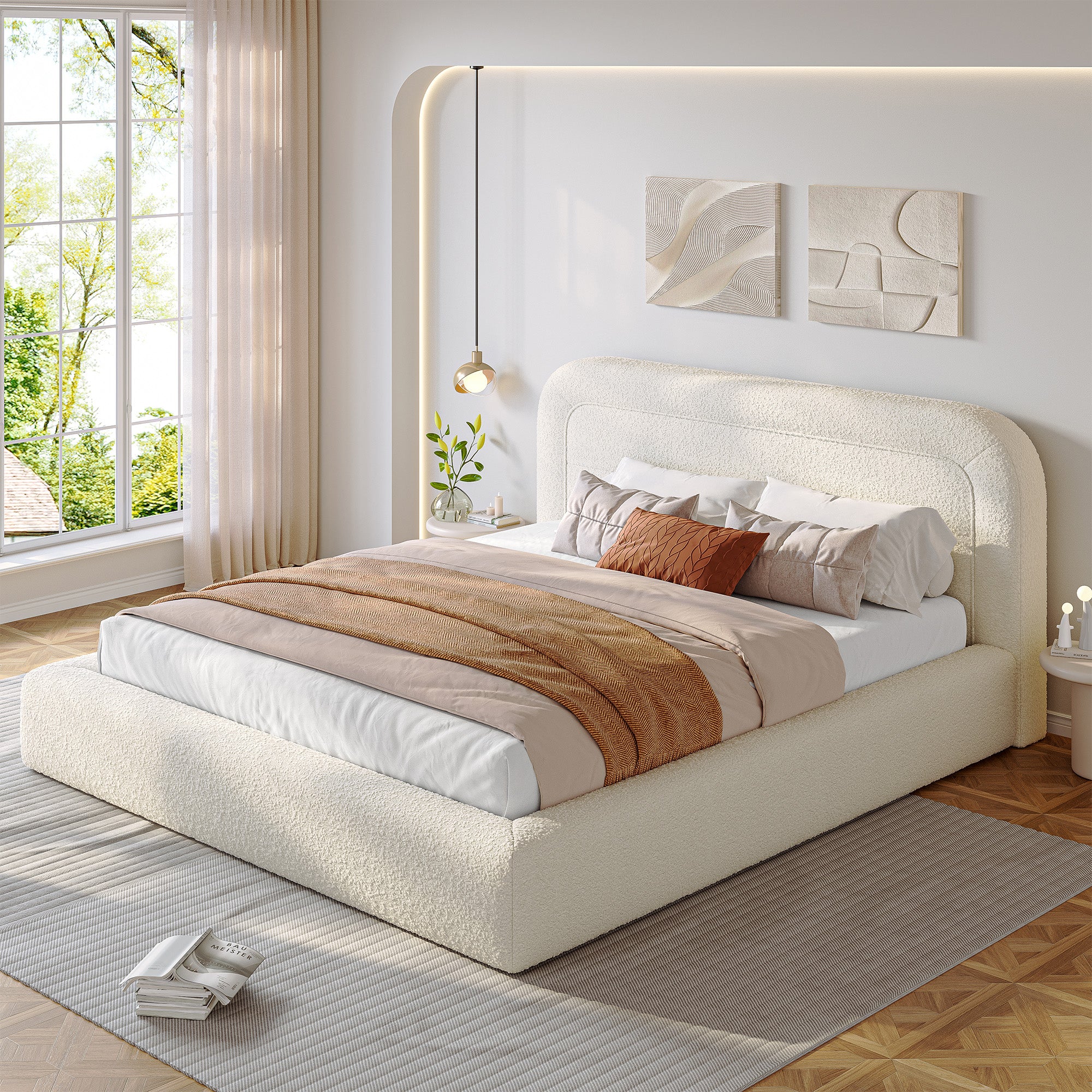 Featuring a smooth curved headboard and boucle-inspired velour fabric, this bed frame blends softness with sophistication. Its modern minimalist profile complements apartments, guest rooms, and cozy contemporary spaces.